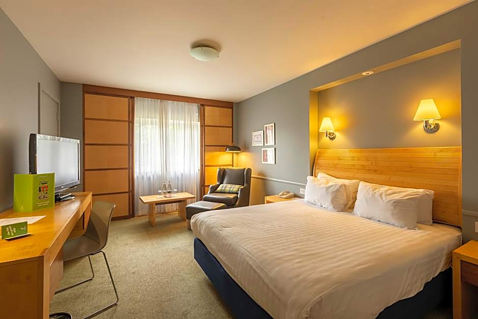 These air-conditioned rooms have a 28-inch flat-screen TV and facilities for making tea and coffee. The private bathroom is stocked with complimentary toiletries with shower over bath. This room also includes complimentary bathrobes, upgraded toiletries and a room safe. In addition, the Holiday Inn Executive room product has been enhanced and guests booking this room type will now receive the following amenities & services: -Super fast complimentary WiFi, premium hot drinks refreshment amenities -Still and sparkling water in your room -Bluetooth sound system & 37-inch flat-screen TV -Bathrobes and slippers