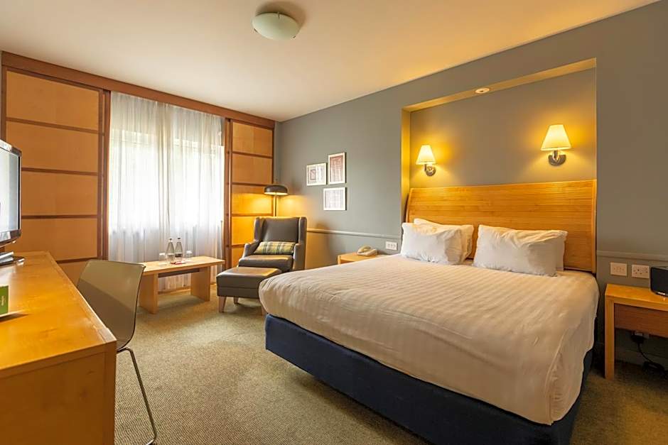 These air-conditioned rooms have a 28-inch flat-screen TV and facilities for making tea and coffee. The private bathroom is stocked with complimentary toiletries with shower over bath. This room also includes complimentary bathrobes, upgraded toiletries and a room safe. In addition, the Holiday Inn Executive room product has been enhanced and guests booking this room type will now receive the following amenities & services: -Super fast complimentary WiFi, premium hot drinks refreshment amenities -Still and sparkling water in your room -Bluetooth sound system & 37-inch flat-screen TV -Bathrobes and slippers